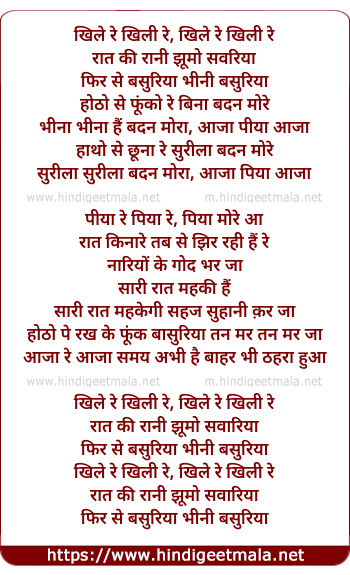 Lyrics of Khile Re Khili Re Raat Ki Rani - खिले रे खिली रे रात की रानी