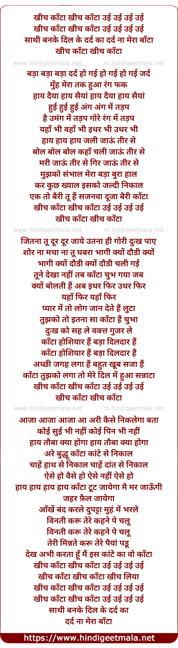 Lyrics of Khinch Kaanta Khinch Kaanta Uye Sathi Ban Ke - खीच काँटा खीच काँटा उई साथी बन के