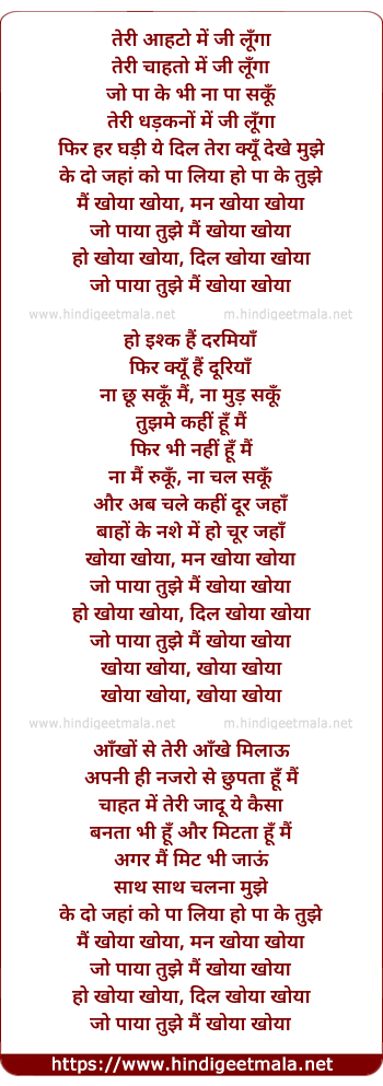 Lyrics of Khoya Khoya - खोया खोया