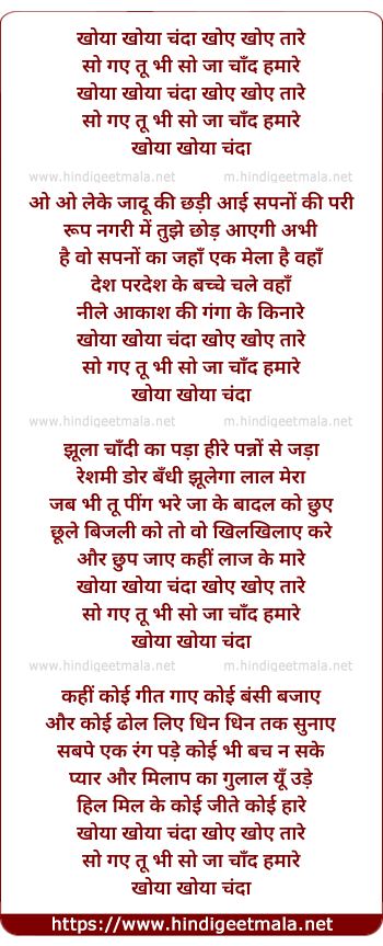 Lyrics of Khoya Khoya Chanda Khoye Khoye Tare - खोया खोया चंदा खोए खोए तारे
