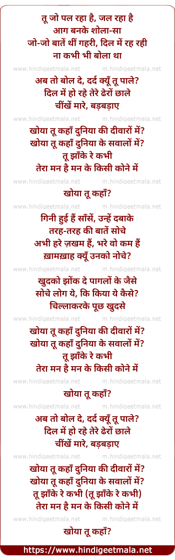 Lyrics of Khoya Tu Kahaan - Unplugged - खोया तू कहाँ - अनप्लग्ड