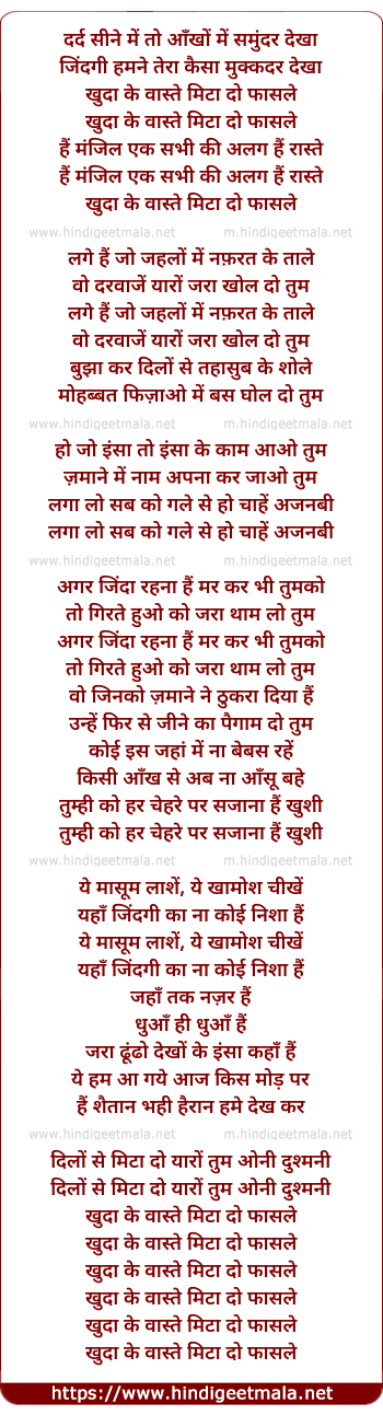 Lyrics of Khuda Ke Vaste Mita Do Fasle - खुदा के वास्ते मिटा दो फासले