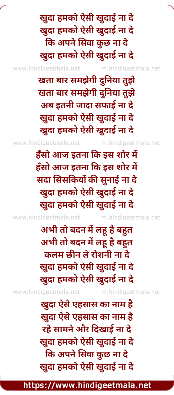 Poetic Translation - Lyrics of Khudaa Hamako Aisi Khudaai Naa De Jagjit Gazal - खुदा हमको ऐसी खुदाई ना दे