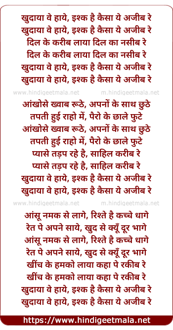 khudaya ve haye ishq hai kaisa ye ajib re
