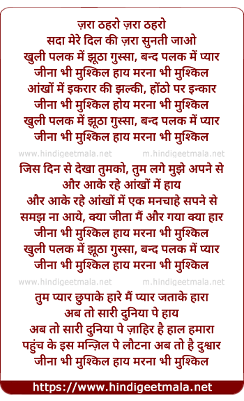Lyrics of Zara Thahro - ज़रा ठहरो