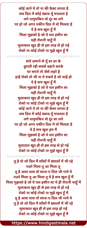 mila mujhako hai jo ye pal hasin sa