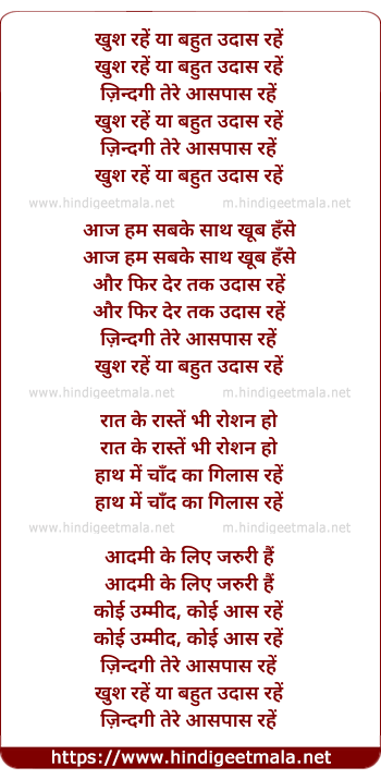 Lyrics of Khush Rahe Ya Bahut Udaas Rahe - खुश रहें या बहुत उदास रहें