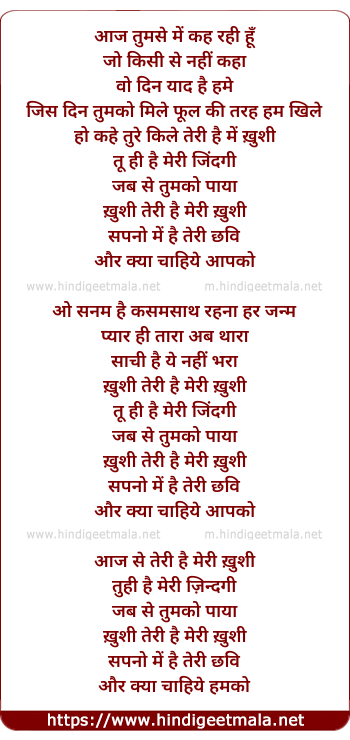 Lyrics of Khushi Teri Hai Meri Khushi - ख़ुशी तेरी है मेरी ख़ुशी
