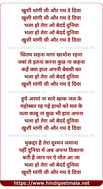 Lyrics of Khushi Mangi Thi Aur Gham De Diya - खुशी मांगी थी और गम दे दिया