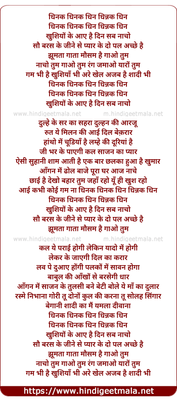 aai kabhi koi gam na dhinak dhinak dhin dhinnak dhin