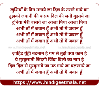 Lyrics of Khushiyo Ke Din Manaye Ja - खुशियों के दिन मनाये जा