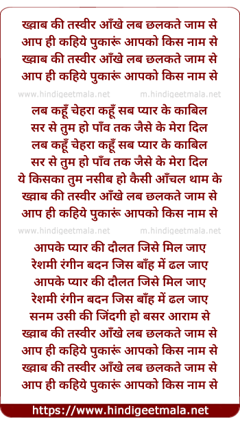Lyrics of Khwab Ki Tasveer - ख्व़ाब की तस्वीर