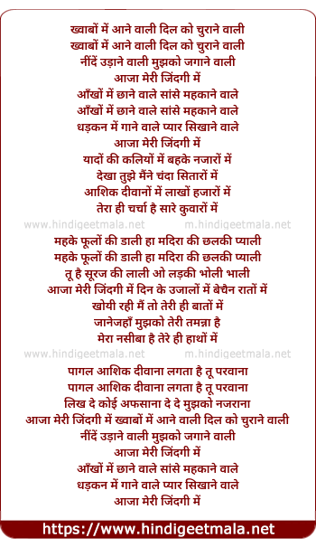aaja meri zindagi me khwabo me aane wali dil ko churane wali