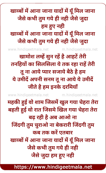Lyrics of Khwabon Me Aana Jana - खाव्बों में आना जाना यादों में यूँ मिल जाना