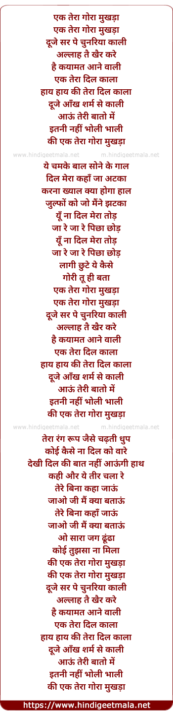Lyrics of Ki Ek Tera Gora Mukhda - की एक तेरा गोरा मुखड़ा