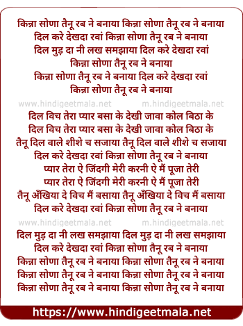 Lyrics of Kinna Sona Tenu - किन्ना सोणा तैनू रब ने बनाया किन्ना सोणा तैनू रब ने बनाया
