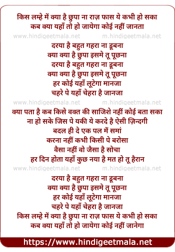 Lyrics of Kis Lamhe Me Kya Hain Chhupa - किस लम्हे में क्या है छुपा