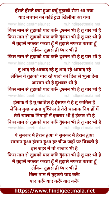 Kis Naam Se Tujhko Yaad Karu - किस नाम से तुझको याद करूँ