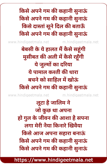 Lyrics of Kise Apne Gham Ki Sunau Kahani - किसे अपने गम की कहानी सुनाऊं