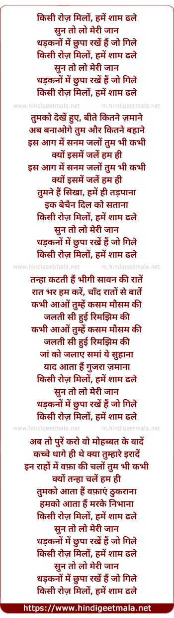 Lyrics of Kisee Roz Milo - किसी रोज़ मिलों, हमें शाम ढले