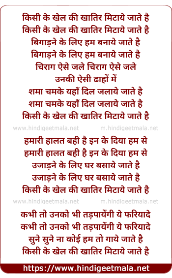 Lyrics of Kisi Ke Khel Ki Khatir Mitaye Jate Hai - किसी के खेल की खातिर मिटाये जाते है