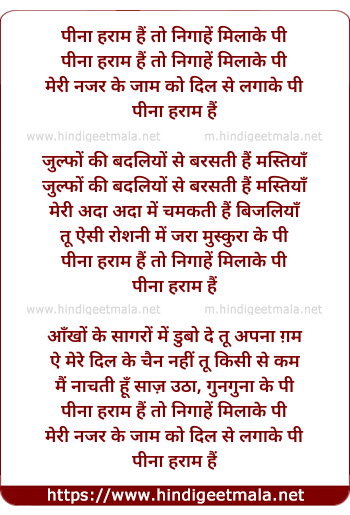 Lyrics of Kisi Ke Pine Ka Yu - पीना हराम हैं तो निगाहें मिलाके पी
