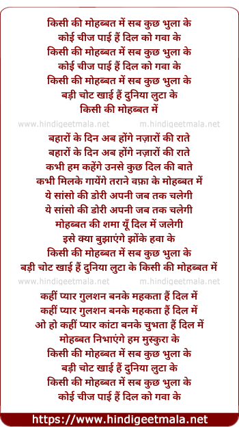 Lyrics of Kisi Ki Mohabbat Me Sab Kuch Bhula Ke - किसी की मोहब्बत में सब कुछ भुला के