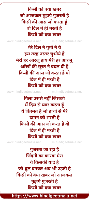 Lyrics of Kisi Ko Kya Khabar - किसी को क्या खबर