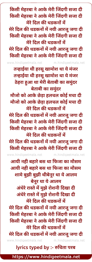 Lyrics of Kisi Meharban Ne Aake Meri Zindagi Saja Di - किसी मेहरबा ने आके मेरी जिंदगी सजा दी