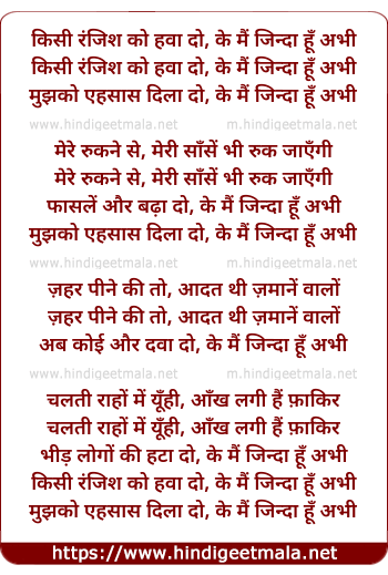 Lyrics of Kisi Ranjish Ko Hawa Do - किसी रंजिश को हवा दो, के मैं जिन्दा हूँ अभी