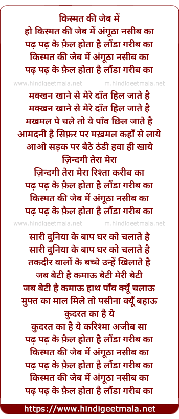 Lyrics of Kismat Ki Jeb Me - किस्मत की जेब में