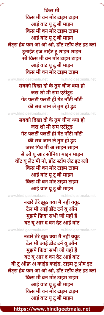 Lyrics of Kiss Me One More Time, Sabko Dikha Do Ke Tum Cheej Kya Ho - किस मी वन मोर टाइम, सबको दिखा दो के तुम चीज क्या हो
