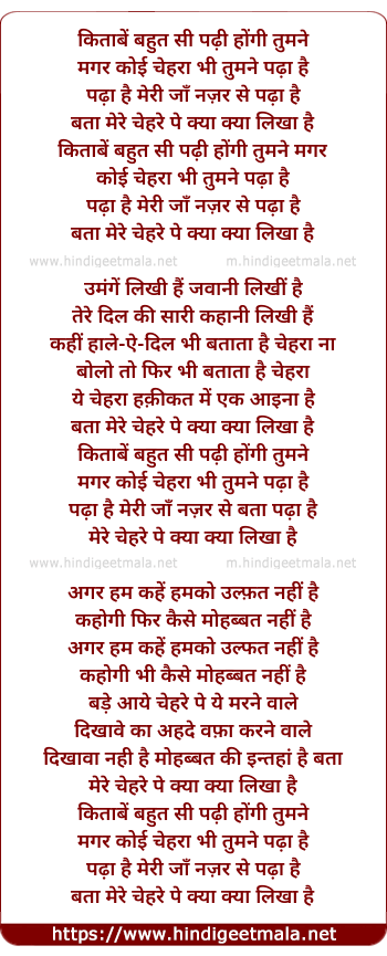 Lyrics of Kitabe Bahut Si Padhi Hongi Tumne - किताबें बहुत सी पढ़ी होंगी तुमने