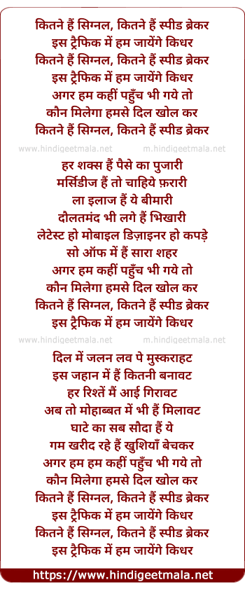 Lyrics of Kitane Hai Signal, Kitane Hai Speed Breaker - कितने हैं सिग्नल, कितने हैं स्पीड ब्रेकर