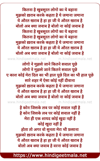 Lyrics of Kitna Hai Khubsurat Logo Ka Ye Bahana - कितना है खुबसूरत लोगो का ये बहाना