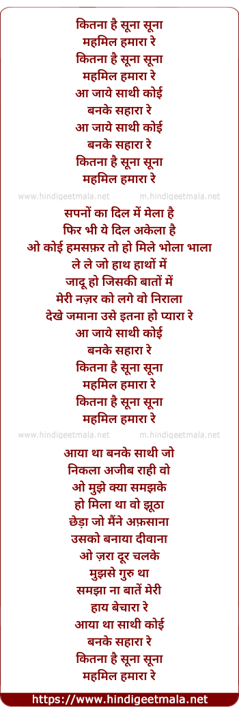 Lyrics of Kitna Hai Suna Suna (Male) - कितना है सूना सूना