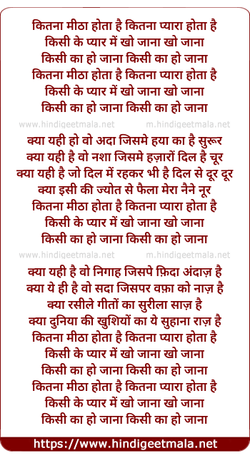 Lyrics of Kitna Mitha Hota Hai Kitna Pyara - कितना मीठा होता है कितना प्यारा