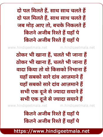 Lyrics of Kitne Ajeeb (Sad) - दो पल मिलते हैं, साथ साथ चलते हैं