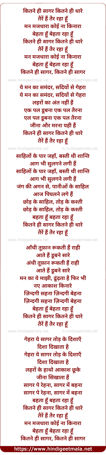 Lyrics of Kitne Hee Sagar - कितने ही सागर कितने ही धारे