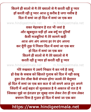 Lyrics of Kitne Hi Saalo Se Mai Ter Khyaalo Se Mai Karti Rahi Hu Pyar - कितने ही सालो से मै तेरे ख्यालो से मै करती रही हूँ प्यार