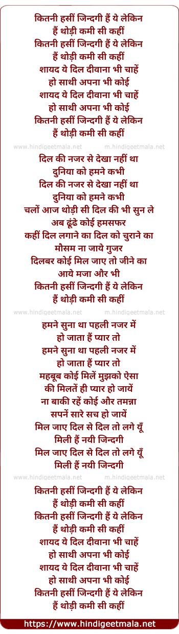 Lyrics of Kitni Haseen Jindagi Hai Yeh - कितनी हसीं जिन्दगी हैं ये