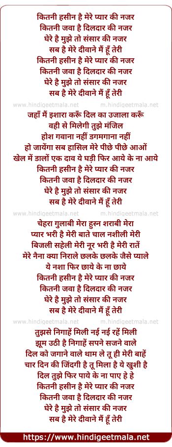 Lyrics of Kitni Hasin Hai Mere Pyar Ki Nazar - कितनी हसीन है मेरे प्यार की नजर