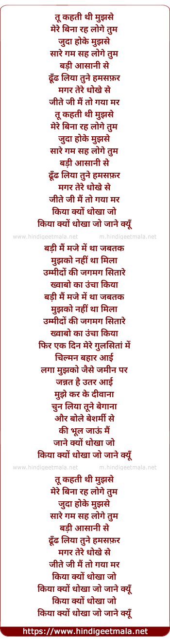 Lyrics of Kiya Kyun Dhokha - तू कहती थी मुझसे
