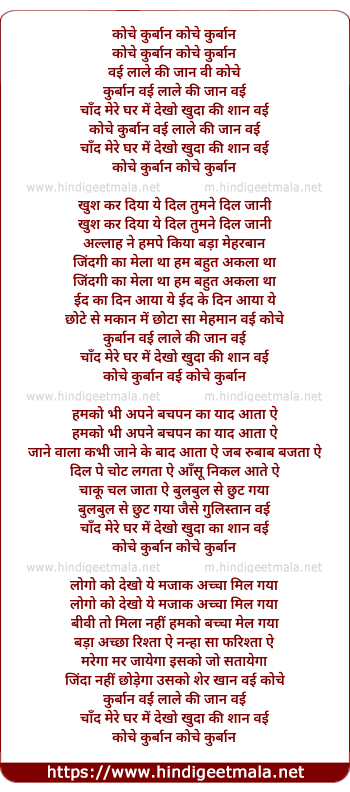 Lyrics of Koche Kurbaan Wai Lale Ki Jaan Wai - कोचे कुर्बान वई लाले की जान वई