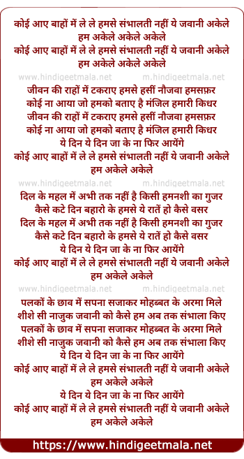 koi aaye baho me le le humse sambhalti nahi ye jwani akele