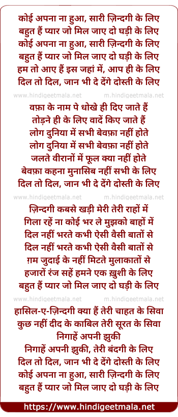 koi apna na hua, sari zindagi ke liye