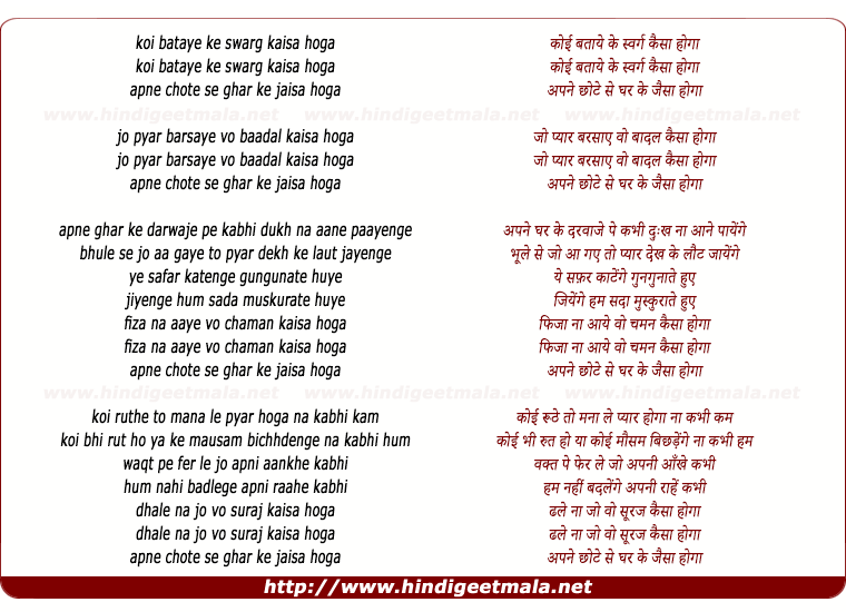 Lyrics of Koi Bataye Ke Swarg Kaisa Hoga - कोई बताये के स्वर्ग कैसा होगा