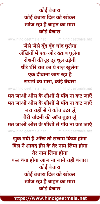 Lyrics of Koi Bechara Dil Ko Khokar Khoj Raha Hai - कोई बेचारा दिल को खोकर खोज रहा है