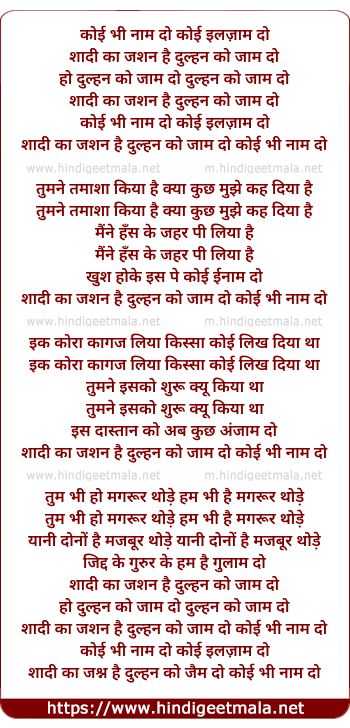 Lyrics of Koi Bhi Naam Do Koi Ilzaam Do - कोई भी नाम दो कोई इलज़ाम दो