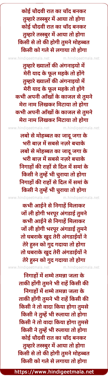 Lyrics of Koi Chaudhvi Raat Ka Chand Bankar - कोई चौदवी रात का चाँद बनकर